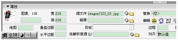 接下來我們要用的是dreamweaver,我們首先打開DW,然后利用DW打開剛剛保存好的文件(images),打開之后我們會看到DW軟件里就會有我們切片好的圖片,打開之后我們可以點擊寶貝圖片,這樣我們就可以在屬性欄中看到寶貝圖片的寬度和高度。