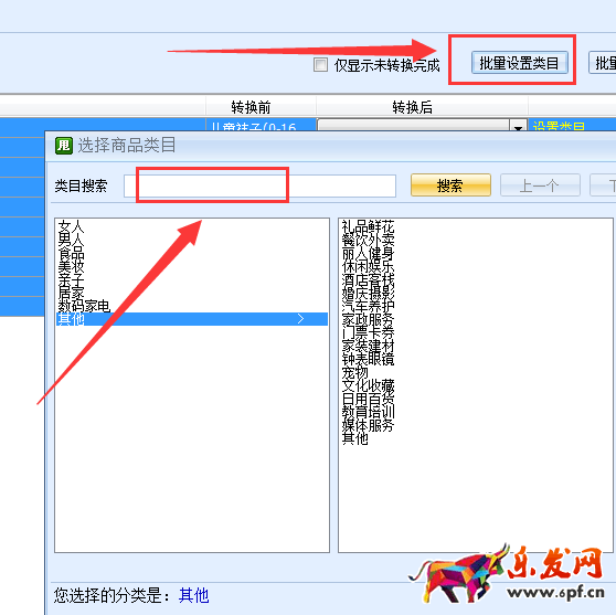 7.轉換商品類目,同類目的商品可以批量設置商品類目。