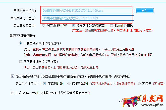 5.選擇處理方式,選擇導(dǎo)出淘寶助理數(shù)據(jù)包并根據(jù)需要選擇下面的小功能,主圖等。