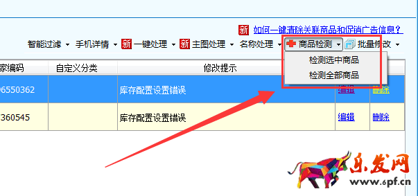 8.建議在此步驟對(duì)商品進(jìn)行批量檢測(cè),避免信息不完整,檢測(cè)后根據(jù)檢測(cè)結(jié)果對(duì)產(chǎn)品進(jìn)行批量修改,批量修改有多種信息可以進(jìn)行批量修改。
