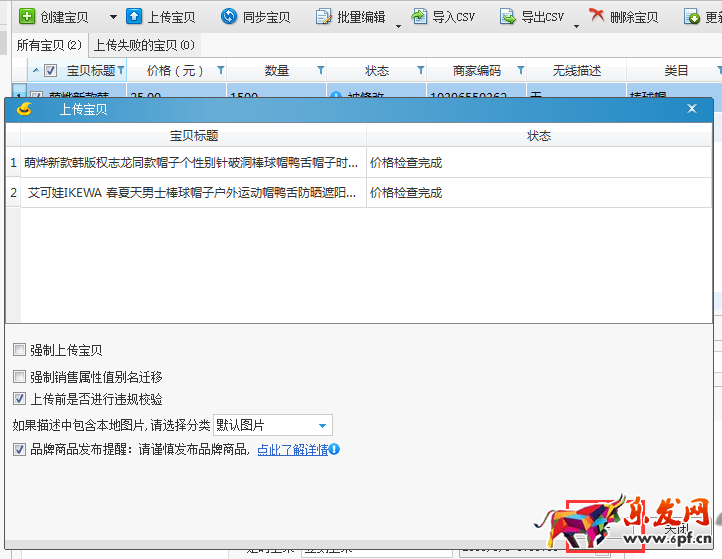 12.對(duì)商品進(jìn)行批量上傳。整個(gè)過(guò)程已成功完成,這樣你就可以在你的淘寶店鋪中看到你從京東抓取過(guò)來(lái)的商品啦!