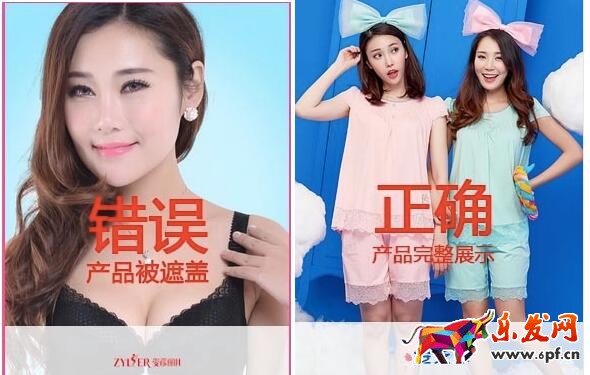5、寶貝圖片不得有任何牛皮癬(廣告信息、新品字樣等),不得拼圖、壓縮變形,必須為模特實拍(文胸、家居服、保暖內衣等必須為模特實拍,內褲、襪子視風格調性等不作完全硬性要求)