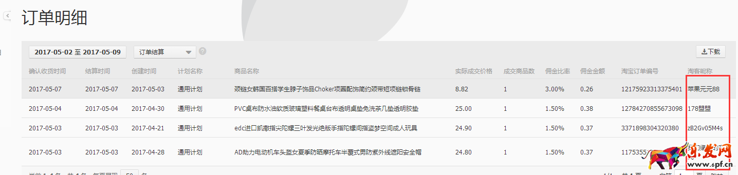 這種方法都可以選擇需要的時間段,下載表格,更方便觀察和篩選。需要注意的是效果報表里的信息是要到訂單結算后才會產生。而且只能顯示淘客昵稱。