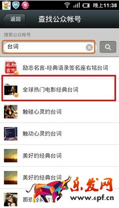 臺(tái)詞類的微信號(hào),競(jìng)爭(zhēng)相對(duì)較弱,可以保證排名出現(xiàn)在首頁(yè),鎖定:“電影臺(tái)詞”一詞