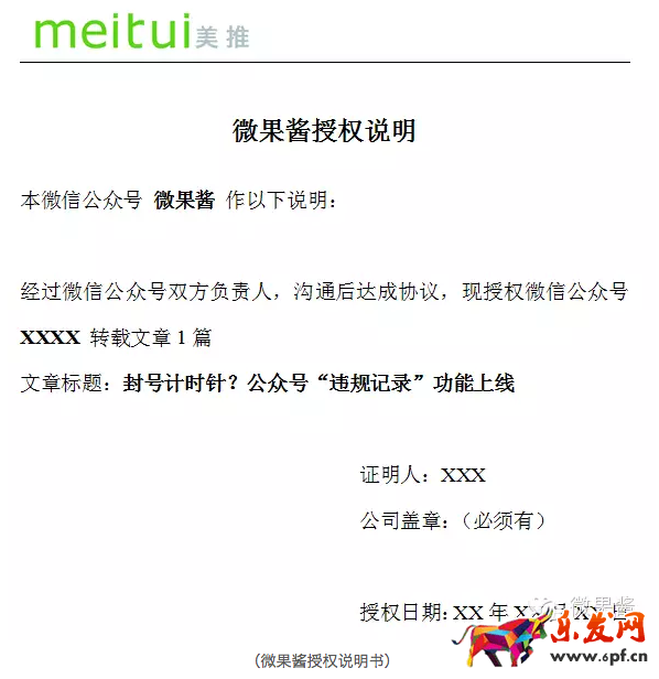 首先,你得有信心人家愿意事后給你授權,否則就得自個兒找角落哭去了。其次,微果醬收到不少反饋,即使拿到了授權證明,也不是100%能通過申訴的。因此建議大家別心存僥幸或冒險打擦邊球,抄襲、侵權不碰為妙,在沒有獲得授權之前,還是乖乖去溝通協商吧。而且未雨綢繆,保存好授權憑證,以應付不知道哪里冒出來的惡意舉報。讓好的內容得以更好的傳播,相信不少原創號很樂意授權給靠譜的微信公眾號的。與其抄得膽戰心驚,不如轉得坦然舒心。g'jG4n]*AU"vV