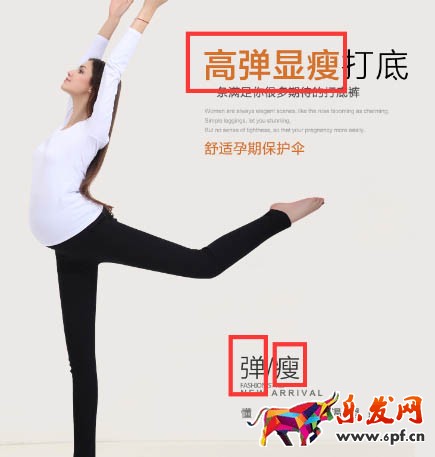 第一張圖,重點突出了“彈”、“瘦”,同時用模特優美的身形來暗示:孕婦媽媽穿這款褲子,也可以這么美。這就產生了一種吸引、一種促使買家往下看的沖動。