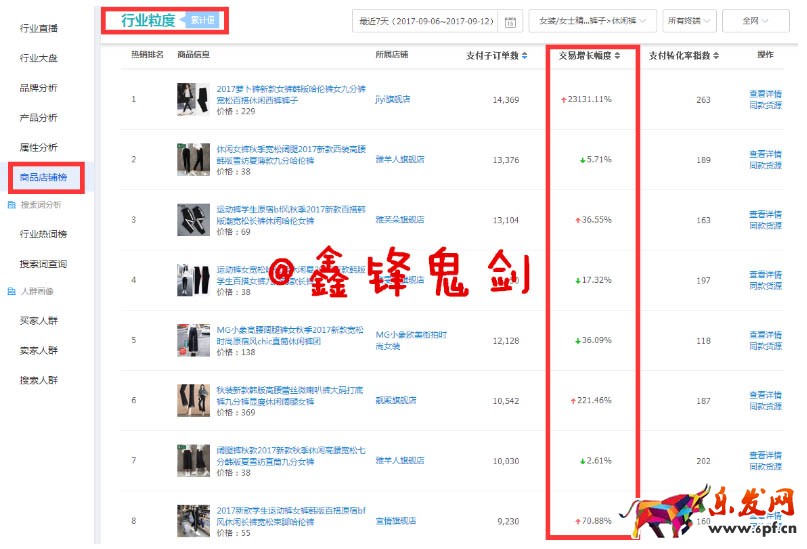生意參謀,直接找商品排行榜,找到你關注的對手,或者想著超越的對手,去看他店鋪的交易增長幅度。