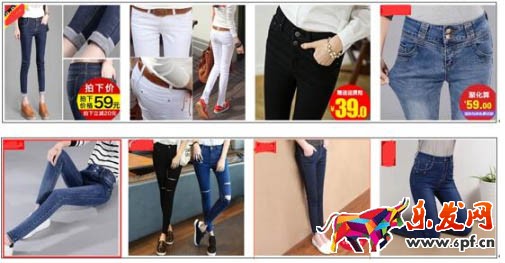 僅以“牛仔褲女 修身款”為例,這兩張圖中,你能否感覺到區別呢,比如上面圖中的第三和第四個,你覺得在點擊欲望層面,跟其他的比是不是要差一些?然后你看第二張圖的四個寶貝首圖,是不是要比第一張圖四個寶貝的首圖都要好一些呢?在拍攝的時候,不管是通過模特的姿勢,還是通過角度,都盡量的把“大長腿”體現出來,比如你可以讓模特作者,可以遠距離拍攝,可以只拍攝大腿等等。
