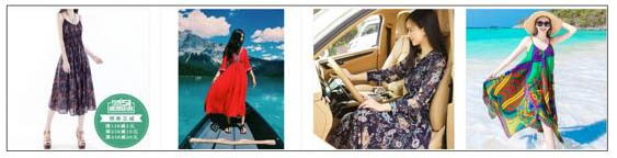 搜索“連衣裙波西米亞風”,你要注意,這里面的需求利益點在“波西米亞風”這個關鍵詞上。買這個裙子的女生都有一種浪漫情懷,暢想的場景式:海邊、旅游,遮陽帽、長裙。所以,看這四張主圖,你有沒有覺得第四張圖的效果要更好呢,在促進點擊率這一層面上。因為消費者看到這張圖的時候,瞬間就被帶到了海邊,幻想著自己穿上這個長裙后,在海邊沙灘漫步的場景。