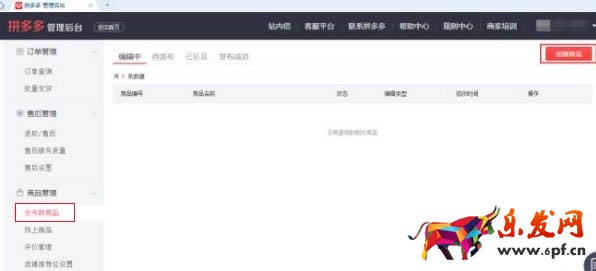 找到左側菜單欄中的【發布新商品】,找到該頁面右上角的【創建商品】,點擊。