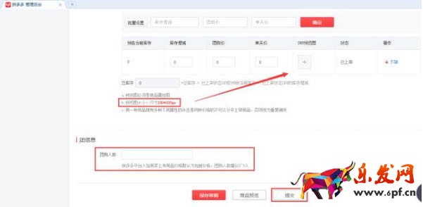 這里一定要根據實際情況設置。sku預覽圖200*200px,必須是商品屬性圖。最后填上團購人數,點擊提交,就大功告成了!