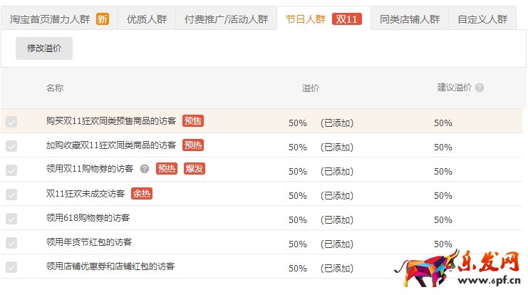同時我們的主推款計劃這段時間要去提高雙十一節日人群的溢價。因為競爭激烈,我們可能需要提高時間折扣,讓關鍵詞排名靠前,得到不錯的點擊量。當我們的增加的預算花不掉時,我們可以加詞、提高關鍵詞出價、提高時間溢價。