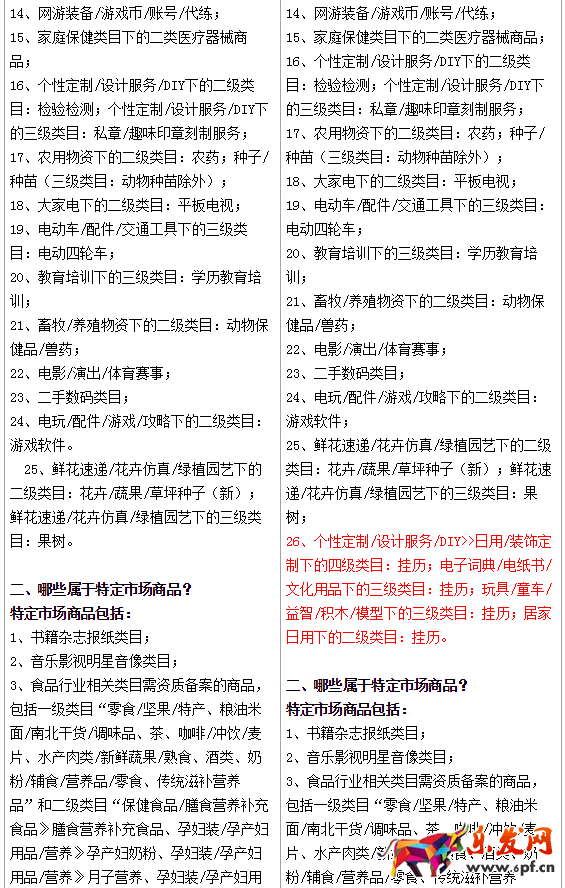 發(fā)布在二級類目“居家日用>>掛歷”,三級類目 “電子詞典/電紙書/文化用品>>印*制品>>掛歷”、“玩具/童車/益智/積木/模型>>寶寶紀(jì)念品/個性產(chǎn)品>>掛歷”,四級類目“個性定制/設(shè)計服務(wù)/DIY>>日用/裝飾定制>>個性臺歷/年歷>>掛歷”下的掛歷商品,實(shí)施資質(zhì)準(zhǔn)入,并列為特定市場商品。