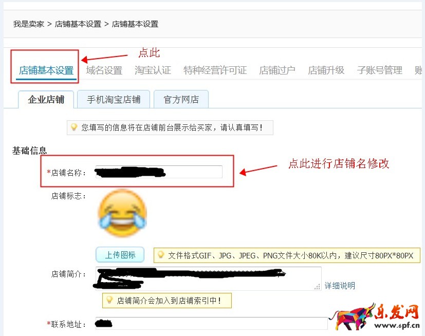 如圖所示店鋪名稱修改:
