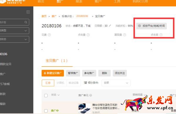 9、打開這個計劃后,點擊“投放平臺/地域時間”
