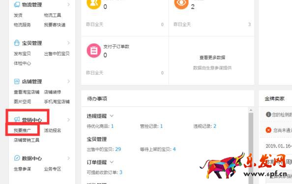 5、在打開的賣家中心頁面中,找到“營銷中心”選項下的“我要推廣”選項