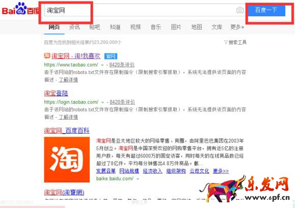 1、截止到2019年,直通車的計算機端淘寶站內搜索不能關閉。打開一個瀏覽器,在百度中輸入“淘寶網”,單擊“百度一下”