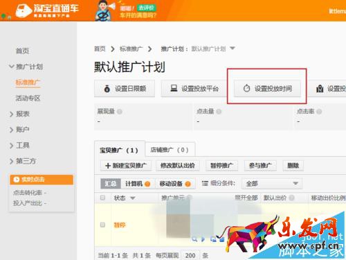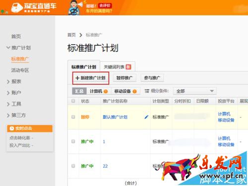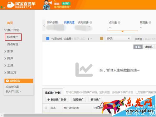 4、進入直通車頁面后,點擊左側【推廣計劃】選擇【標準推廣】。