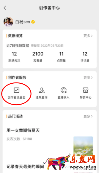 第二步,在創作者服務找到創作者流量包進入選擇視頻