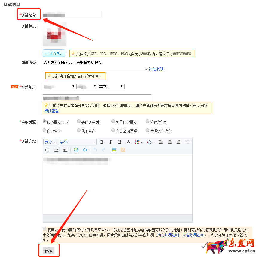 2、填寫店鋪名稱,填寫完后點擊【保存】。如果我們在取店名時沒有什么思路。