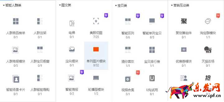 智能人群類、圖文類、寶貝類、營銷類