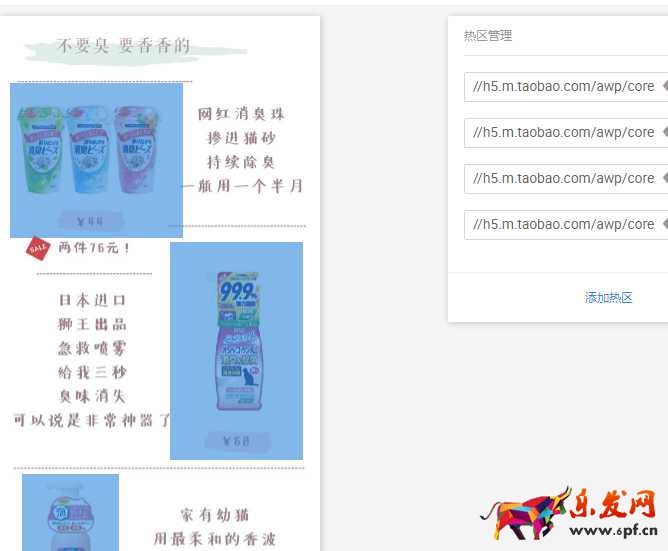 對于你想要呈現的每個寶貝,同樣是做好圖直接傳到淘寶上,然后用“熱區”去確定點擊范圍就好了。
