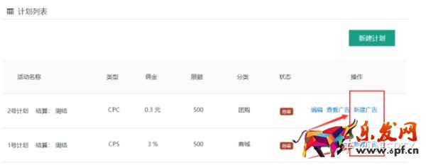 進入推廣后臺后點擊:計劃管理--新建計劃 并提交