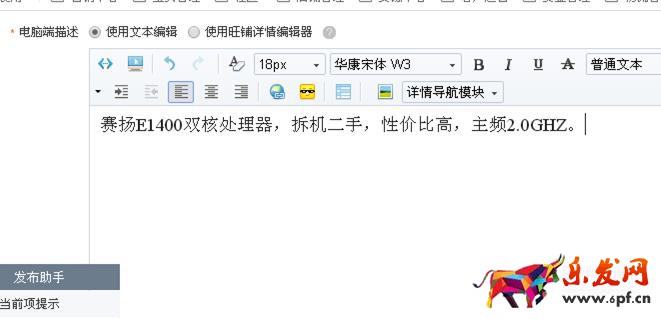 然后是填寫“電腦端描述”,在文本框內寫上對寶貝的信息描述,字體大小和字體型號都可以在上面改動。