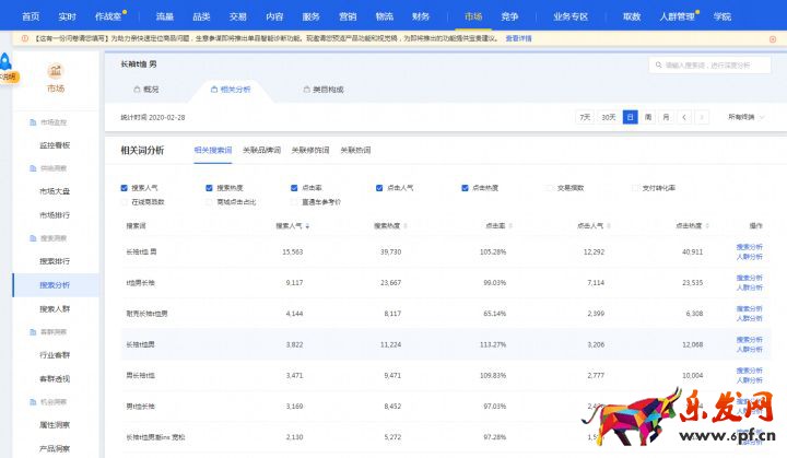 市場中的“搜索排行”是非常重要的,可以看到我們這個行業的各種關鍵詞,核心詞、長尾詞、品牌詞、搜索詞、修飾詞。有人會問我,這個有什么用?