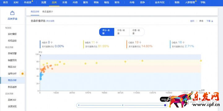 品類羅盤對店鋪商品做了詳細的評分 ,A\B\C\D 4個等級 。