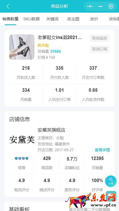 點擊競品監控,這里就可以看到銷售數量,SKU數據,關鍵詞,改主圖,改價格等等數據,也有一個店鋪的整體數據