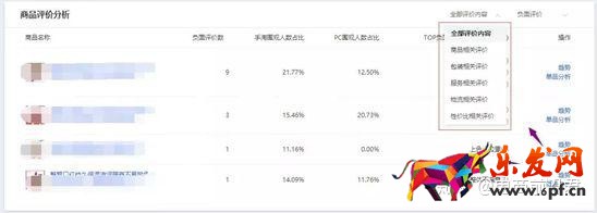 然后下面的指標(biāo)是商品評價分析,這個功能很強(qiáng)大。它統(tǒng)計(jì)出來了單個產(chǎn)品負(fù)面(正面)評價數(shù)(不是差評數(shù)),負(fù)面評價關(guān)鍵詞出現(xiàn)的次數(shù),及負(fù)面評論對多少人產(chǎn)生了影響。在理我們一定要去分析差評,看看真正的愿意所在。因?yàn)椴钤u是給后來者看的,如果不加以重視,你的寶貝很有可能就完蛋了。