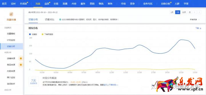 訪客分析這里可以看到店鋪每個時間段的訪客分布以及下單買家分布情況,是非常實用的,我們在設置直通車的分時折扣時可以參考這個功能板塊,下單買家數多的時間段可以加大投放力度,下單買家數少的時間段可以減少投放或者不投放,做到合理投放,做到投產最大化。