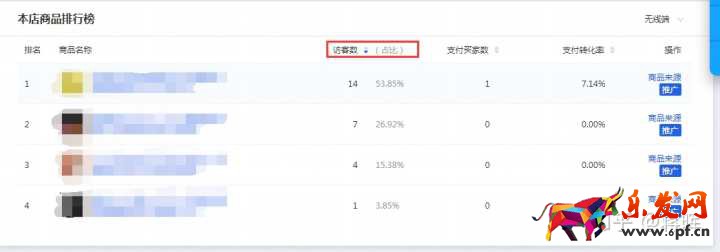 打開生意參謀的流量縱橫,可以看到店鋪內(nèi)各個(gè)單品最近7天的訪客數(shù)數(shù)據(jù):