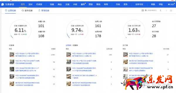 這里數(shù)據(jù)可以自由選擇一天,一周或者是一個月。通過一個數(shù)據(jù)整體概況知道自己一個店鋪的一個情況,從這個數(shù)據(jù)就可以看出“我的淘寶”和“購物車”的轉化率是最高的,自然搜索轉化還行
