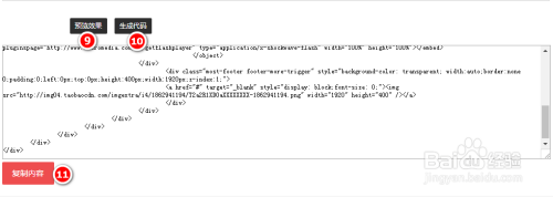 第四:預(yù)覽查看效果,符合自己需要的效果后,點擊生成代碼,復(fù)制內(nèi)容即可直接放入淘寶或者天貓后臺自定義區(qū)中去.
