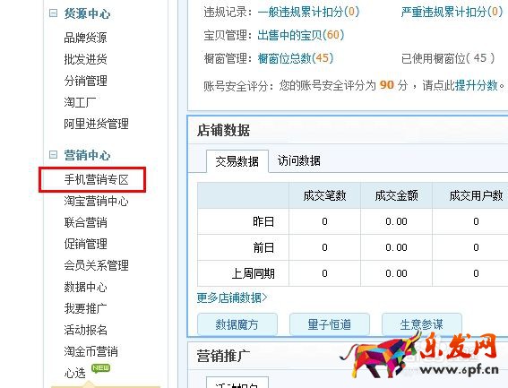 登陸淘寶網店進入賣家中心→營銷中心→手機營銷專區,點擊進入。