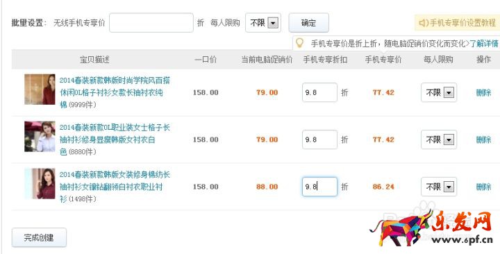 手機專享價開通權限要求:1鉆以上集市賣并已開通手機店鋪的賣家及所以天貓賣家以上開通。