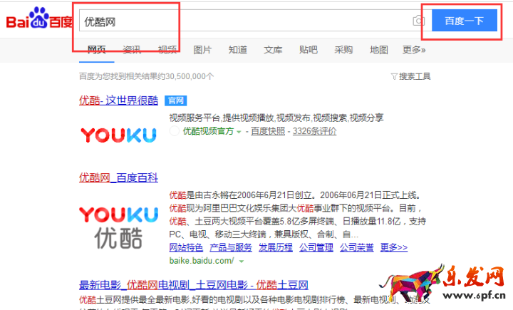 1、首先在瀏覽器搜索優酷,如下圖所示。