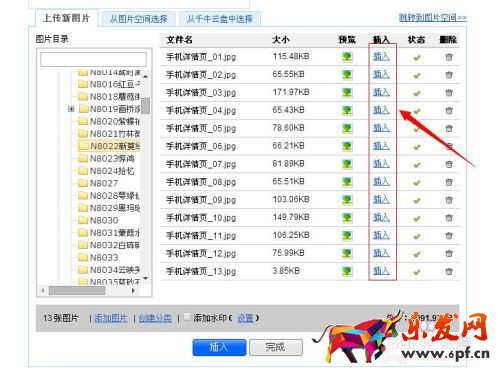 7、圖片會自動上傳 點擊 【插入】就可以把圖片插入到詳情頁中