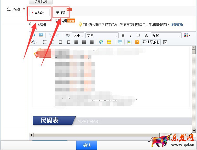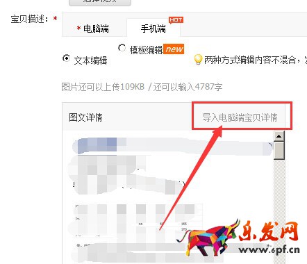當(dāng)在電腦端的寶貝描述編輯好后。點(diǎn)下:手機(jī)端,電腦編輯頁(yè)面轉(zhuǎn)到手機(jī)編輯頁(yè)面。