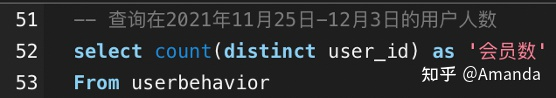 按如下語句,即可統計出現有業務中,共有983名用戶在2021年11月25日-12月3日期間發生了動作。