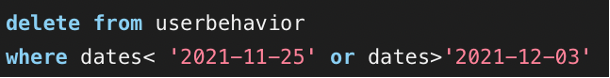 • 不符合分析要求的數據,如此案例中,需要分析11月25日-12月3日之間的用戶行為,在此時間段之外的行為都不應該被納入此次分析