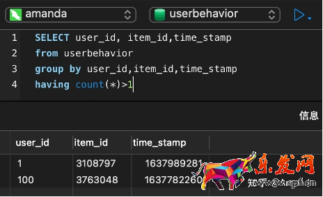 在表中應用篩選條件直接刪除重復行 或查詢語句 (如下圖)將重復的行找到并刪除