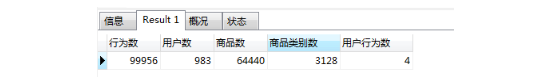 對總用戶數,商品數,商品類別數,用戶行為數進行分析匯總