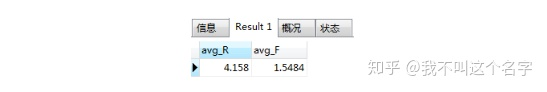 SELECt avg(Rscore) as avg_R, avg(Fscore) as avg_F