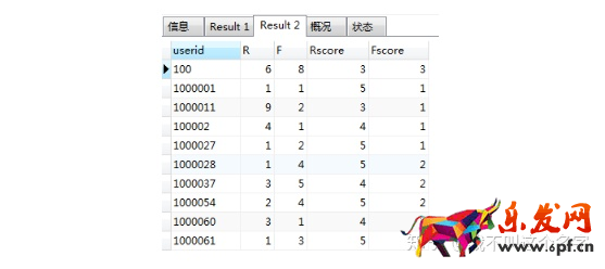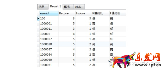 select userid,R值高低,F值高低,