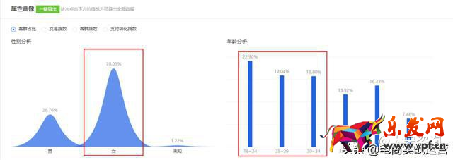 客群占比中,女性人群超過70%,這就圈定了我們店鋪的核心人群,因此店鋪的風格必須要貼近女性用戶的偏好。