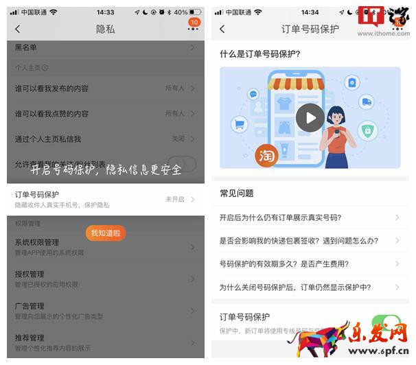 手機淘寶用戶可在提交訂單頁的下方或者點擊“我的淘寶-> 設(shè)置-> 隱私-> 訂單號碼保護”勾選開通訂單號碼保護服務(wù)。部分商家和商品尚不支持號碼保護服務(wù),覆蓋范圍將逐步擴大。