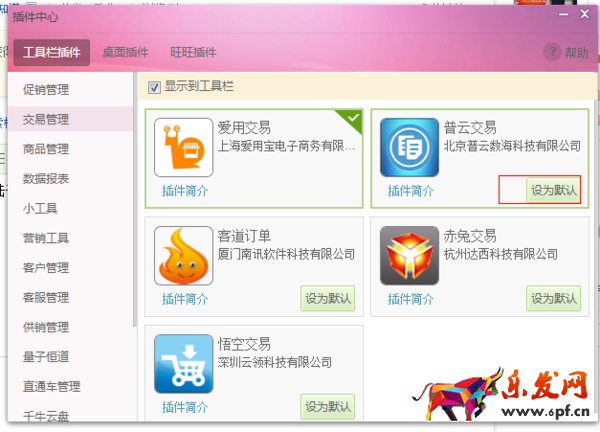 電腦端進入旺旺的交易管理,把普云交易設置為默認即可。